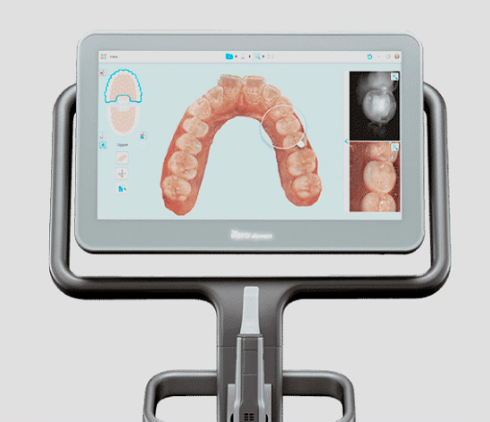 O que há de mais moderno , para darmos mais conforto nas moldagens aos pacientes. Através do escaneamento intra oral, fazemos imagens digitais , encaminhando para o laboratório através do arquivo de imagens , tornando o processo de moldagens muito mais rápido e preciso. Evitando assim aquelas moldagens convencionais que incomodam o paciente.