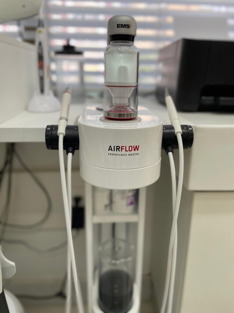 O Airflow é uma tecnologia moderna utilizada na profilaxia dental profissional, indicada para remover placa bacteriana, manchas superficiais e biofilme de forma eficaz e confortável.