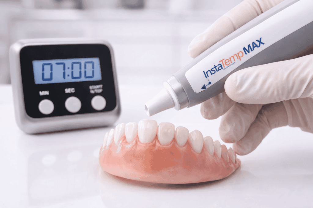 Com o avanço da odontologia digital, hoje é possível confeccionar próteses provisórias de forma rápida, precisa e confortável. Utilizando a tecnologia InstaTemp Max, o paciente pode receber seu provisório em aproximadamente 7 minutos, garantindo mais agilidade no tratamento.